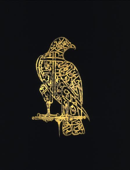 Calligraphic ‘Alam in the Shape of a Falcon Golconda, 17th century Perforated gilt copper H. 13¾ in. (34.9 cm), W. 8 in. (20.3 cm) Victoria and Albert Museum, London Image: © Victoria and Albert Museum