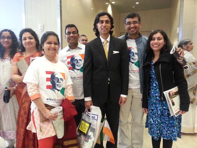 Indeed, the groundwork was done months ahead with visits across the US by Vijay Jolly, Global Convener Overseas Friends of BJP (OFBJP) , and Rajyavardhan Singh Rathore, MP and sports hero, to meet with Indian-Americans, and get everyone involved. Jolly said that they had attended public programs in several US cities in a 12 day visit to thank the Indian-American community for their “catalyst role in shaping the destiny of India in modern times.”