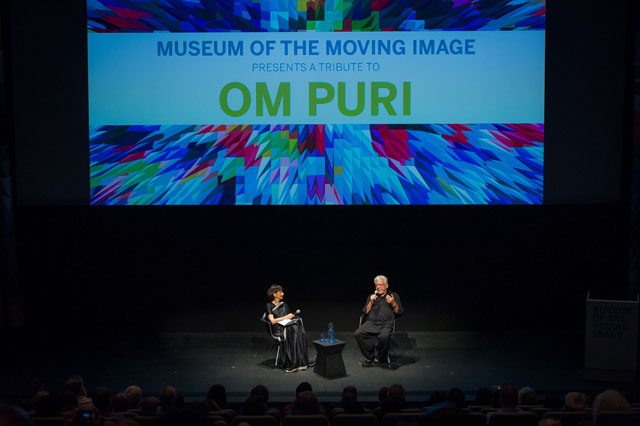 A day before the premiere of the film in New York, the prestigious Museum of the Moving Image had a special screening of ‘The Hundred-Foot Journey’ and a well-deserved tribute to the inimitable Om Puri. The noted actor has acted in over 250 films including Ardh Satya, East Is East, My Son the Fanatic, and Mirch Masala. After a clip of some of his most memorable films was shown, he had a relaxed on-stage conversation with noted actor and culinary authority Madhur Jaffrey, who was able to bring the two worlds of cuisine and cinema together. Though probably not by design, both of them were in black, Om Puri in a loose black pathani suit, highlighting his head of silver hair.