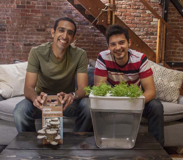 Imagine growing gourmet oyster mushrooms from discarded coffee grounds! Imagine nurturing green herbs in water tanks containing pet fish and their waste! The financial world lost Nikhil Arora and Alejandro Velez , both students at UC Berkeley, who were headed toward careers in investment banking and consultancy – but the environment has gained two creative thinkers who can turn waste into nutrient gold.